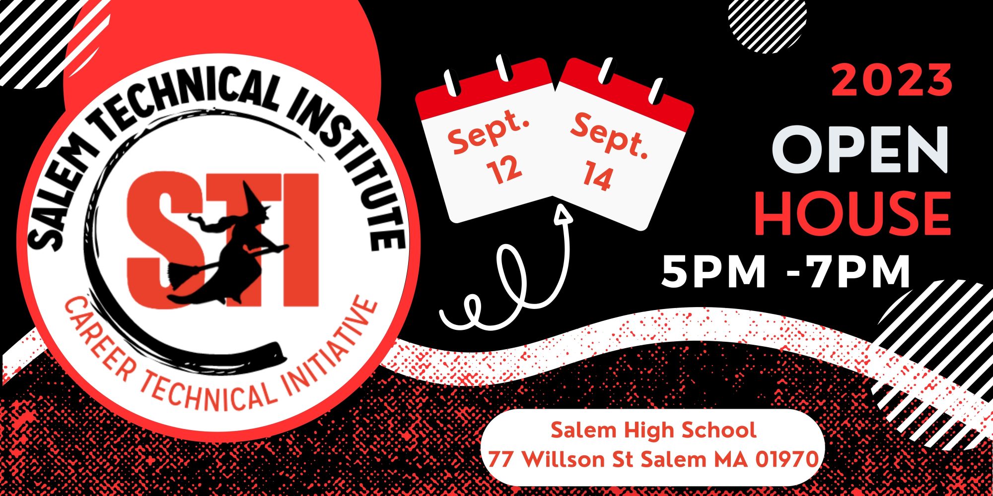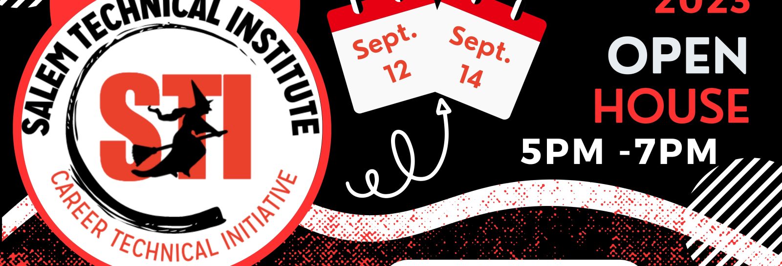 The SHS CTE & The newly created “Salem Technical Institute” cordially invite you to their OPEN HOUSE on 9/12/23 & 9/14/23 from 5-7pm