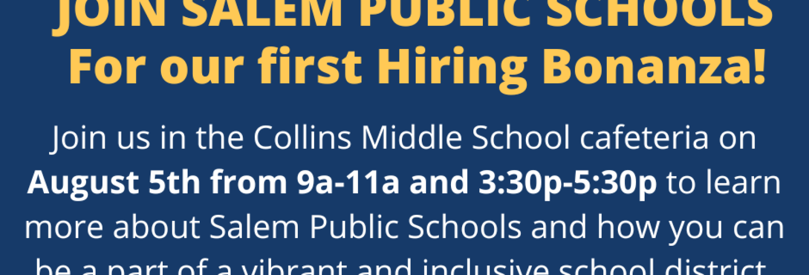 Salem is a vibrant and historic community with a diverse population. We are looking for you and others to join us to provide a supportive and thriving environment for our students, families, and staff.
