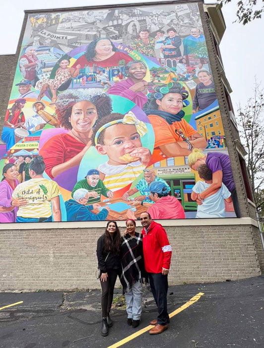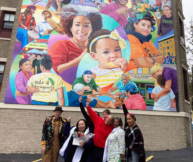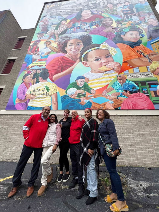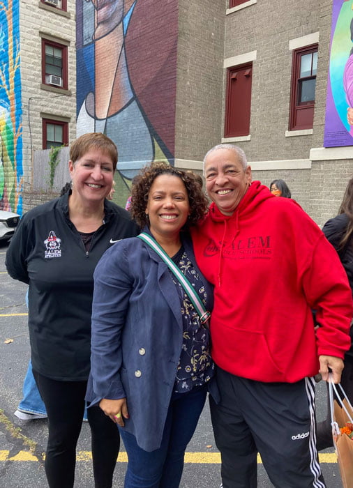 Three members of the SPS family were selected to be featured on the Harbor Street mural Saturday afternoon. Kudos to Laura Assade, our Director of Diversity, Equity, Inclusion & Engagement, Collins Middle School physical education teacher, Evelyn Oquendo, and Salem Prep support specialist, Yamily Byas, each prominently displayed in the unveiling of the mural in The Point neighborhood.